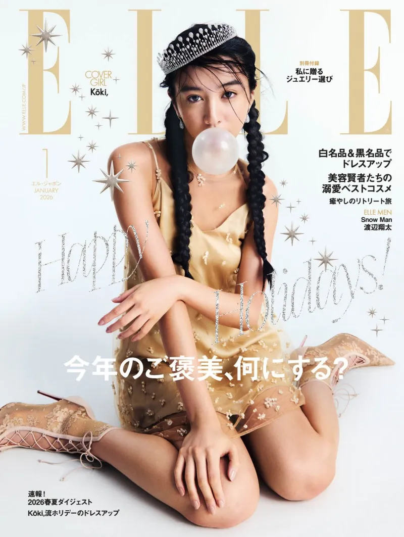 モデルや女優などとして活躍するKōki,さんが11月28日(金)に発売の雑誌「ELLE Japan(エル・ジャポン)」1月号の表紙に登場。また、男性アイドルグループ「Snow Man」のメンバー・渡辺翔太さんが1月号特別版の表紙に登場します。