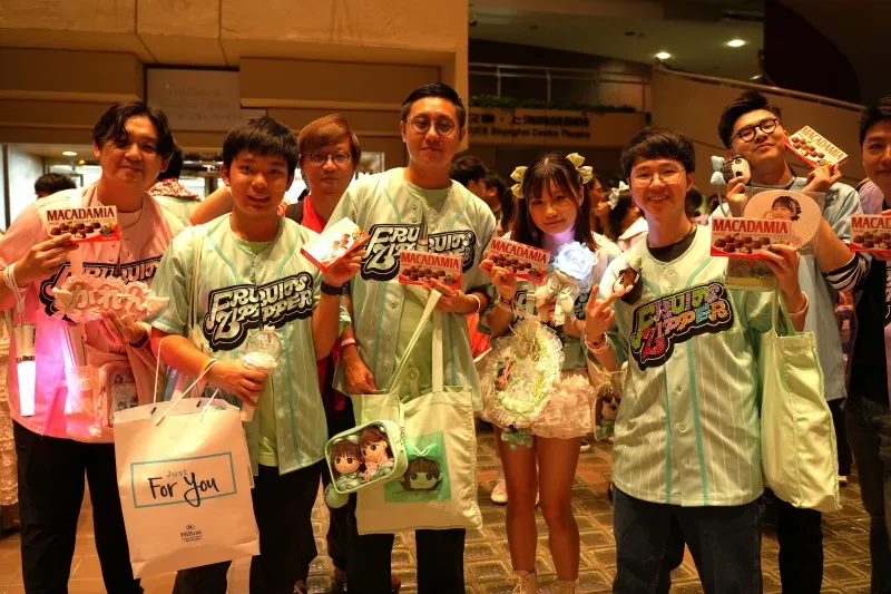 11月8日・9日の上海公演では、「マカダミアチョコレート」のサンプリングを実施。上海でも商品を片手に直筆サインパネル前で記念撮影を楽しむファンの姿が多く見られました。CM楽曲が流れる中、ライブ前後の会場は一層の盛り上がりを見せました。