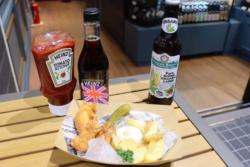 看板メニューの1つ「FISH&CHIPS」は、衣はサクサク、中はジュワッとジューシー。優しい味わいのタルタルソースはもちろん、ケチャップやビネガーをかけて食べるのもおすすめだ。店内ではギネスビールをサーバーから提供しており、英国パブのようにビールと一緒に楽しむことができる。価格は980円(税込)、ソフトドリンク付き1,200円(税込)。