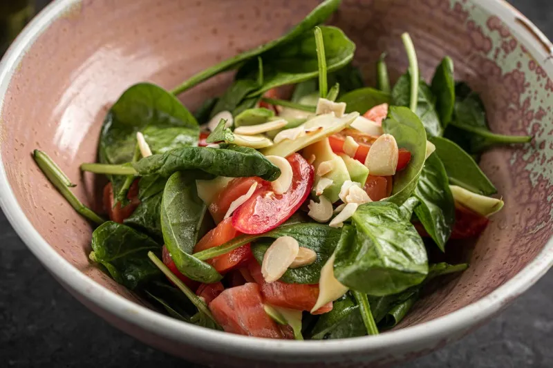 EPA・DHAは空気や熱、光により酸化しやすい性質があります。そのため、抗酸化作用を持つビタミンEと一緒に摂ることがおすすめ。 魚と一緒に植物油やナッツ、緑黄色野菜など、ビタミンEを多く含む食品を組み合わせるとよいでしょう。 例えば、サーモンのサラダにオリーブオイル大さじ1とアーモンド10粒(約10g)ほどをトッピングすれば、手軽にビタミンEを補えます。