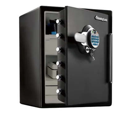 極太カンヌキとこじ開けに強いセキュリティ性を持ち、2時間で1010℃まで加熱するUL耐火試験とデジタルメディア耐火テストをクリア。耐水性能もあり、家庭用金庫として最上級の性能を備えています。