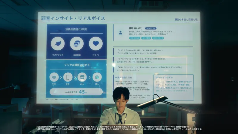 仕事の現場では、提案力そのものよりも、資料の見せ方や情報整理の精度で評価が左右されることが少なくない。だからこそ、このCMは単なる新サービス紹介にとどまらず、「仕事の武器を持つこと」の大切さをユニークな演出で見せている。