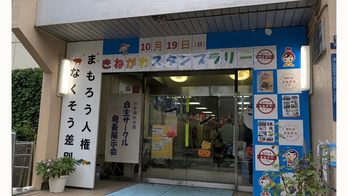 「スタンプラリー」で回るのは東墨田2丁目にある墨田区社会福祉会館の1階にある産業・教育資料室きねがわ、2階の展示コーナーの2箇所と、近くにある都立皮革技術センター、八広児童館の合計4箇所。