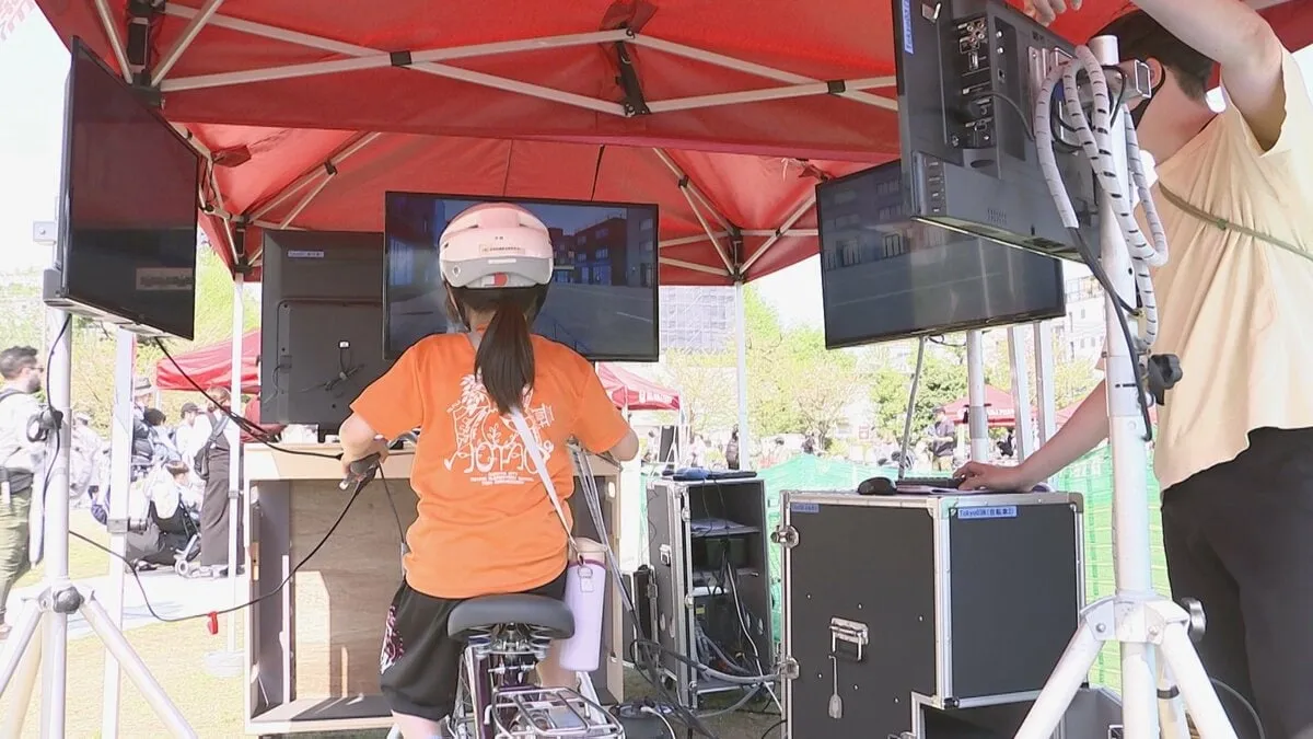 自転車の悪質な違反に対し反則金を伴う「青切符」制度が今月1日から導入され、関心が高まる自転車に関するブースでは、自転車や歩行者の動きを再現したシミュレーションを体験しながら子どもたちなどが交通ルールを学んでいました。