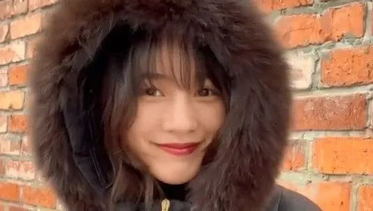 ファーの付いたフードを被り、カメラを見つめてポーズを決めるのんさん。