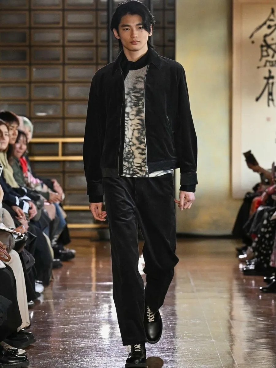 更に、ベルベットジャケットと柄物インナーを合わせたモノトーンスタイルや、白いポケットチーフが映える端正なブラックスーツ姿など、バリエーション豊かなルックを披露しました。