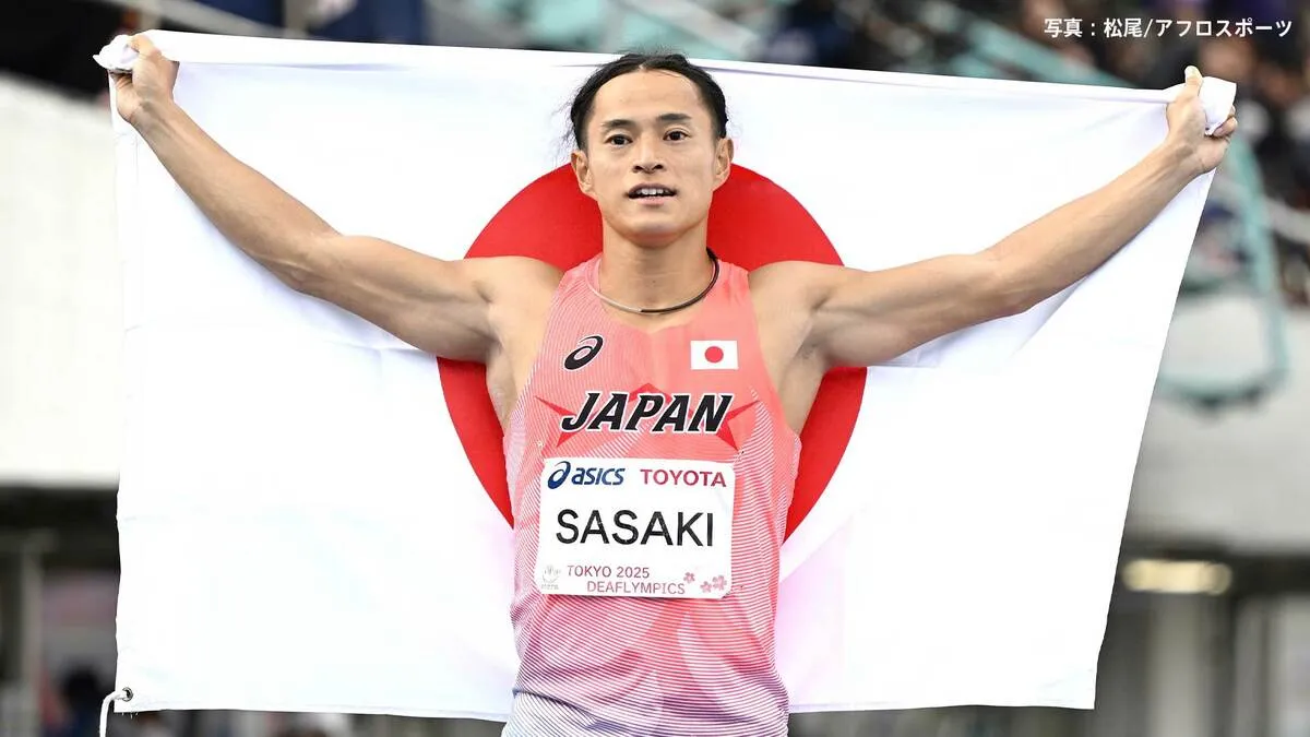 日本で初めて開催されている「東京2025デフリンピック」、陸上競技の男子100mで佐々木琢磨(31、仙台大学TC)が10秒63で銅メダル。2大会連続でメダルを獲得した。