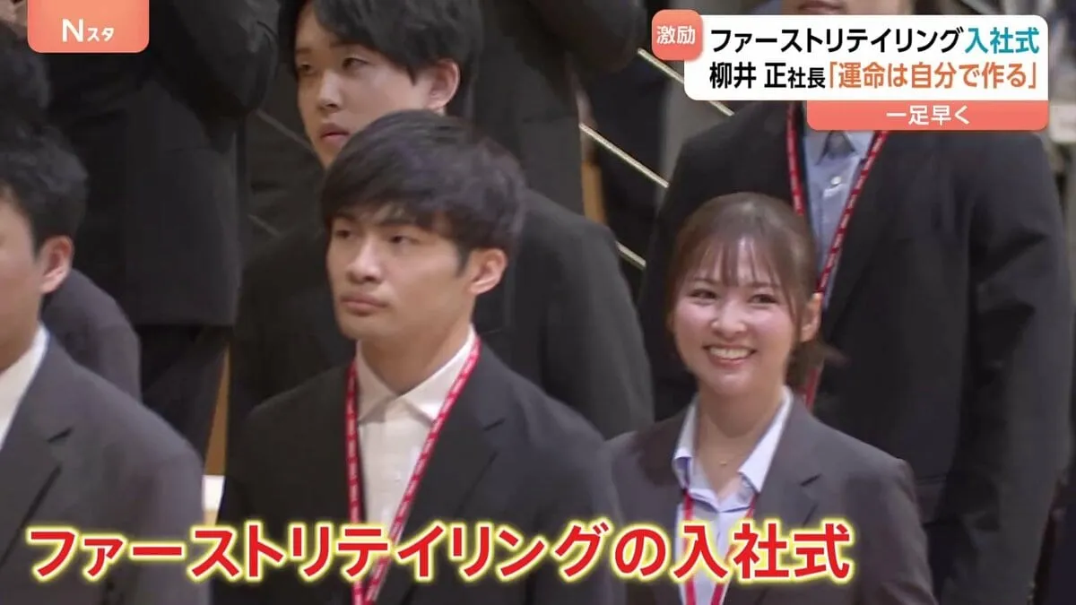 ユニクロなどを運営するファーストリテイリングで、きょう、一足早い入社式が行われました。