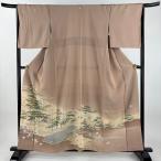 付下げ 身丈157cm 裄丈63.5cm S 袷 四代目上野眞 落款あり 松竹梅 霞 ぼかし 薄茶色 正絹 逸品 一つ紋 中古 在庫一掃