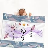 名前入り ブランケット 毛布 可愛い モフア シングル 名入れ 生年月日 身長計付き 出産祝い ベビー ブランケット 洗える 柔らかく肌触り 暖かい おしゃれ ベビー布団 暖房効果 グレー 厚手 お昼寝に (和柄青) [並行輸入品]