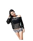 [HINRYO] 今月90%OFF 1782 水着 レディース 体型カバー 3枚セット パッド付き オフショル セクシー かわいい ビキニ 女性用 (B:1782-ブラック, XL)