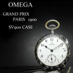 オメガ 1900年代 アンティーク シルバー900 銀製 象嵌 オープンフェイスケース ホワイトポーセリン アラビア 手巻 懐中時計 HKPW2