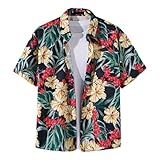 [Ailiyumo] アロハシャツ メンズ 大きいサイズ ハワイシャツ 開襟 花柄 ビーチシャツ 薄手 ゆったり リラックスフィット 祭り 花火 速乾B13-XL